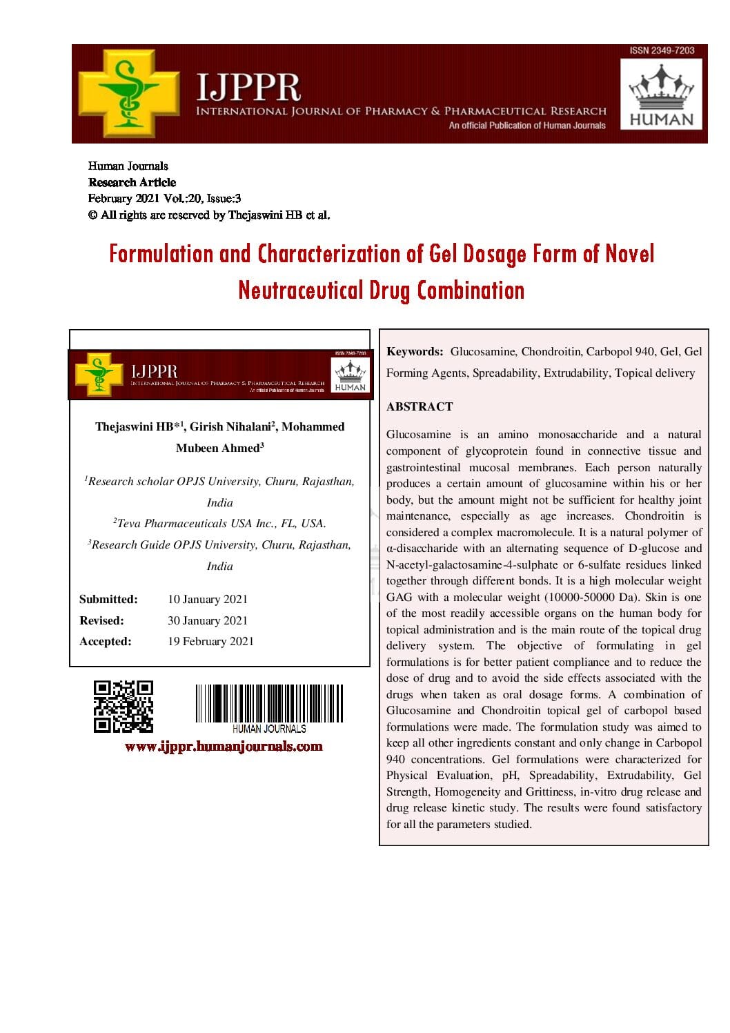 It’s our pleasure to inform you that, IJPPR Issue has been Published.