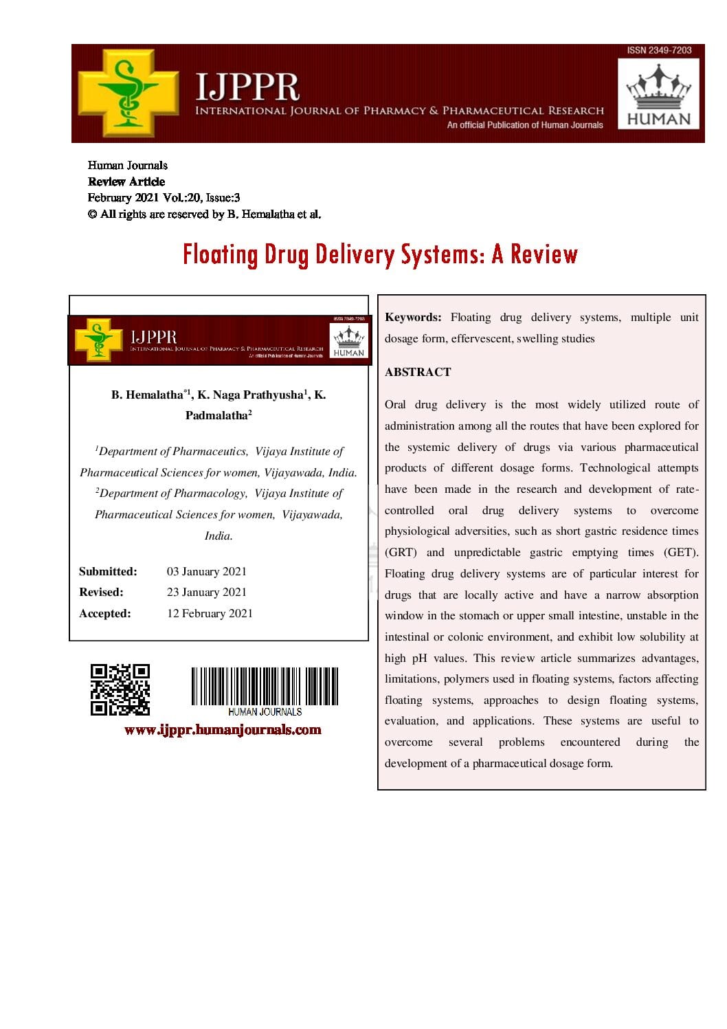International Journal of Pharmacy and Pharmaceutical Research (IJPPR) will give the best paper award every year in the form of money along with a certificate to support the research activity of scholars.